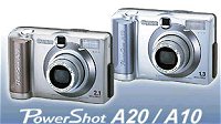 The elegant 3x zoom PowerShot A20 and A10 from Canon, featuring 2.11 and 1.31 megapixel sensors respectively, are ideal for your first steps in digital photography. Whether you want family portraits for the album or fessional-level pictures for your web site, Canon's world-class photo-technology delivers every time! The 35 - 105mm 3x zoom lens make these cameras ideal for close-ups, groups and long-range panoramas. The PowerShot A10's 1.31 megapixel CCD sensor captures the finest detail with 1280 x 960 pixel resolution, while the PowerShot A20 features a 2.11 megapixel CCD sensor for amazing larger prints. The professional look to your shots will also be enhanced by Canon's latest intelligent 3-point auto-focusing system AiAF (Artificial intelligence Auto Focus), which ensures your subjects are always in focus, and Canon's automatic exposure and flash systems, which guarantee the right exposure in all light conditions. Not only are the PowerShot A20 and A10 easy to use, they bring you the future right now, thanks to their direct link to the amazing new Canon Card Photo Printer CP-10, and video link to your TV set for instant viewing! |
