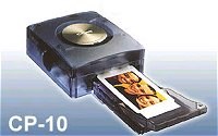 Direct printing from Canon digital cameras means there's no need to use a PC to print digital camera images. With the Canon CP-10 Photo Card Printer, you can print high-quality credit-card size photographs, ready for use in just seconds. Printing is simplicity itself. Just connect the camera to the compact CP-10 with the dedicated cable provided, and then select the prints you want using the simple print menu on the camera. In less than one minute, a full-color print is delivered - completely dry and ready to go. The Canon CP-10 Photo Card Printer is housed in a cool, smoke-blue translucent case so you can watch while your print develops on the spot. The size and weight of a hardback novel, the CP-10 connects directly to any "Direct Print" mode Canon digital camera, and its portability means you can take it with you anytime, anywhere |